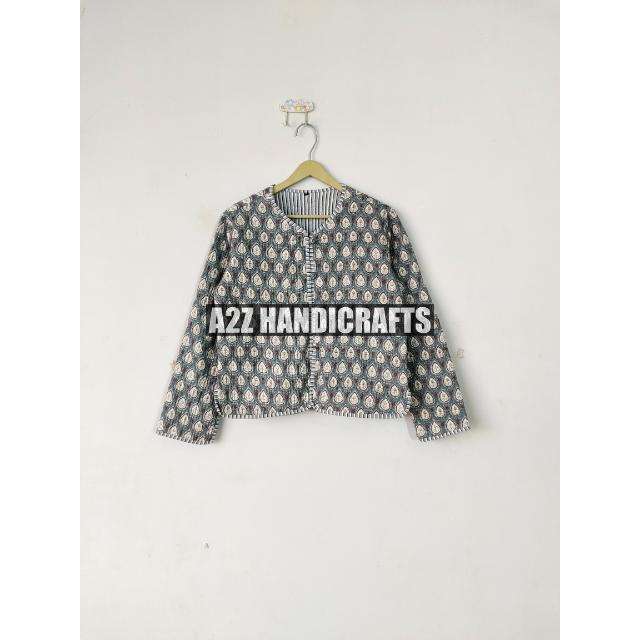 Women's Cotton Quilted Jacket Block Printed Boho Style Quilted Handmade Coat Holidays Gifts Button Closer Jacket for Women