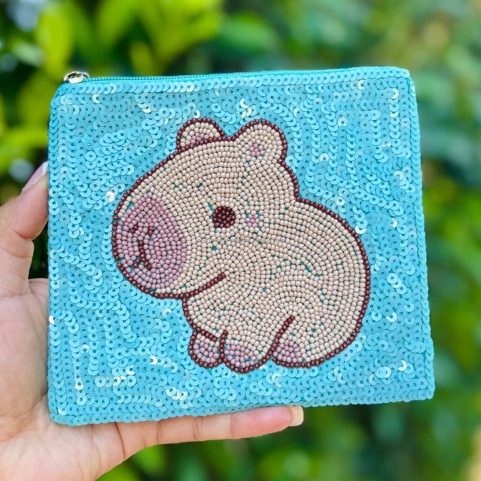 Women's Cowboy Capybara Beaded Sequin Clutch with Zipper Closure Eco-Friendly Durable Western Fashion Evening Bag