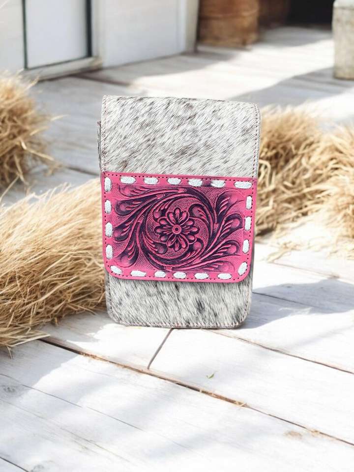 Women's Cowhide Leather Hand-Tooled Bohemian Western Sling Crossbody Bag Tassel Flower Decorations Light Weight for Summer