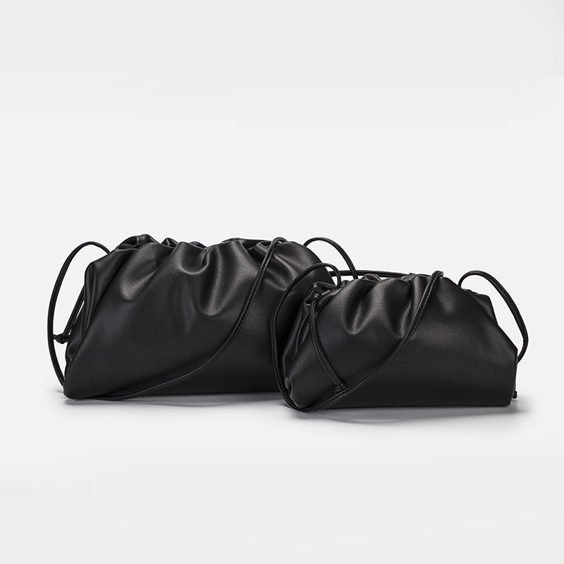Women's Cowhide Leather Handbag Small Cloud Bag Single Shoulder Crossbody Pleated Clutch Soft Dumpling Casual Fashion Style