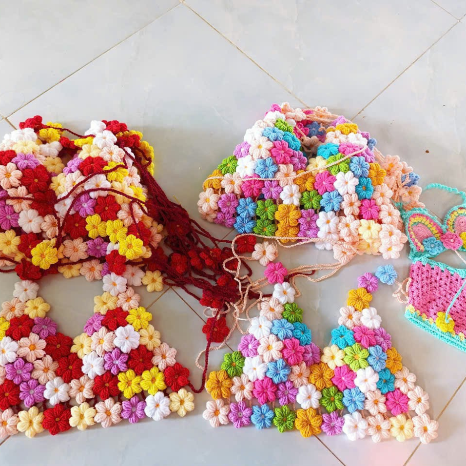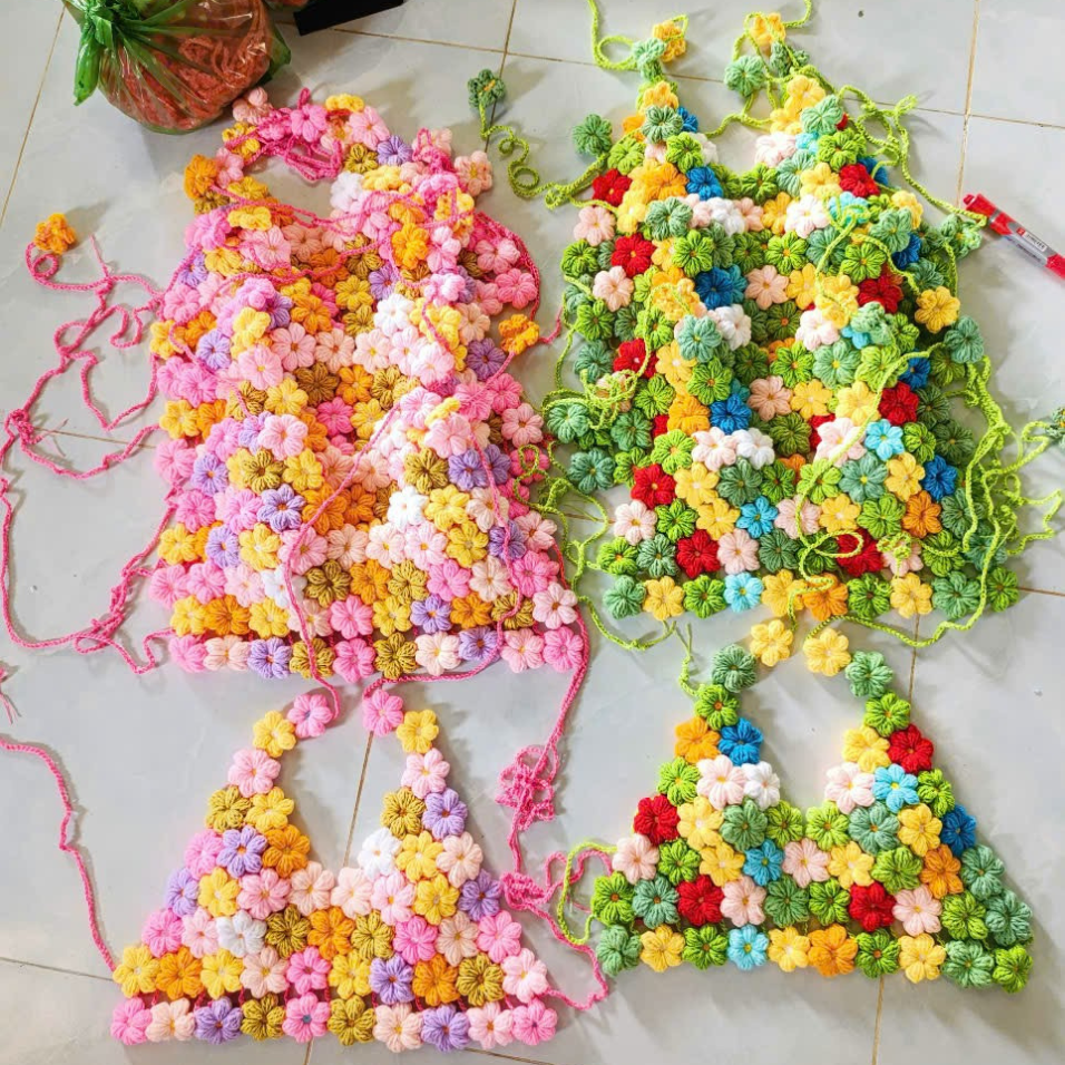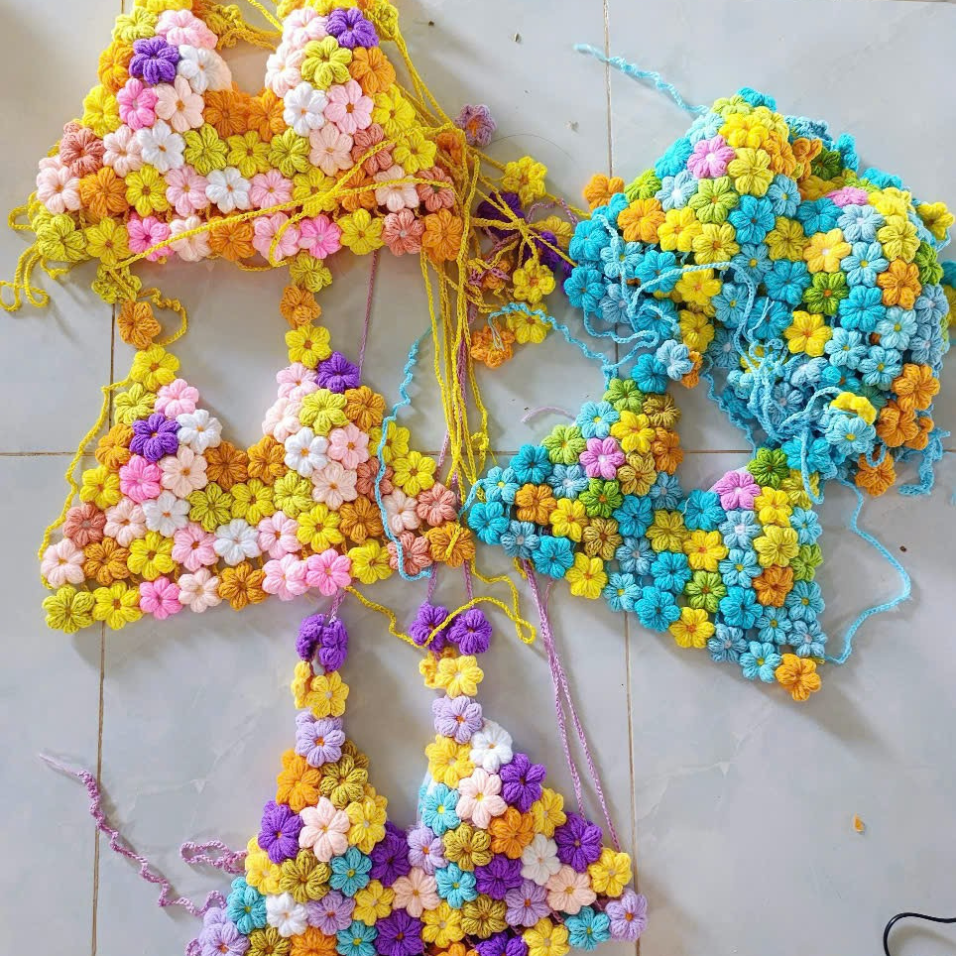 Women's Crochet Two Piece Bikini Sets Swimsuit Floral Print Tops And High Waisted Shorts Beach Outfits OEM ODM Made In Vietnam