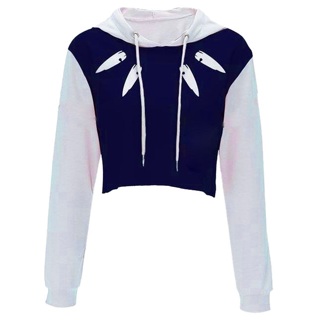 Women's Crop Top Hoodies Custom Made White Cropped Sleeve Pullover Sweatshirts Front Printed Knitted Hooded Sweatshirts Winter