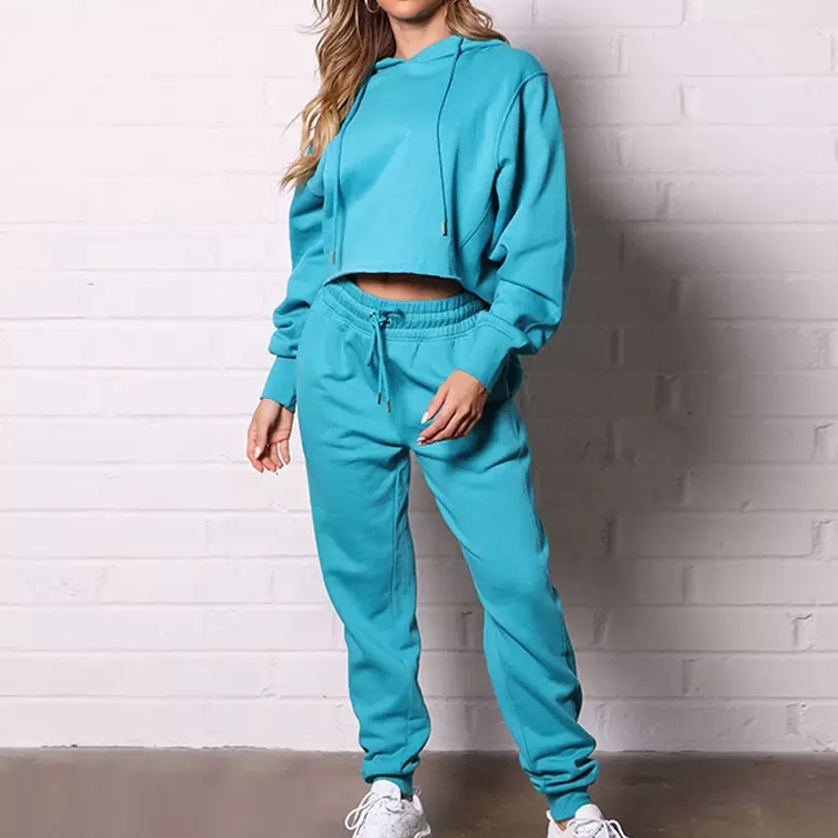 Women's Cropped Hoodie Jogger Sweat Set Two Piece Casual Outfits Windproof 100% Cotton Tracksuit Plus Size Sweatsuit