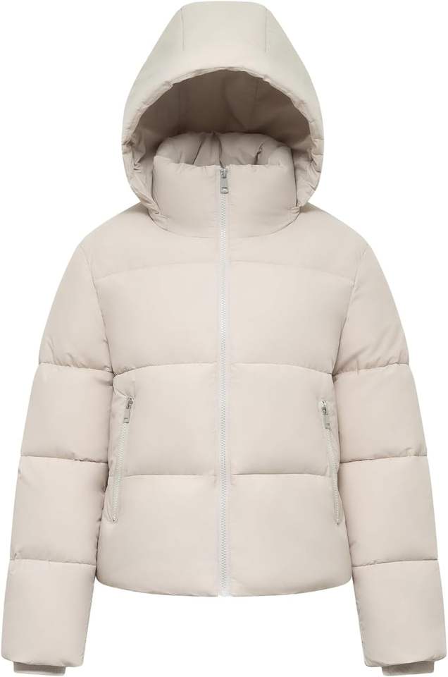 Women's Cropped Puffer Jackets Warm Winter Jacket with Removable Hood Zipped Pockets Short Ladies Quilted Coat
