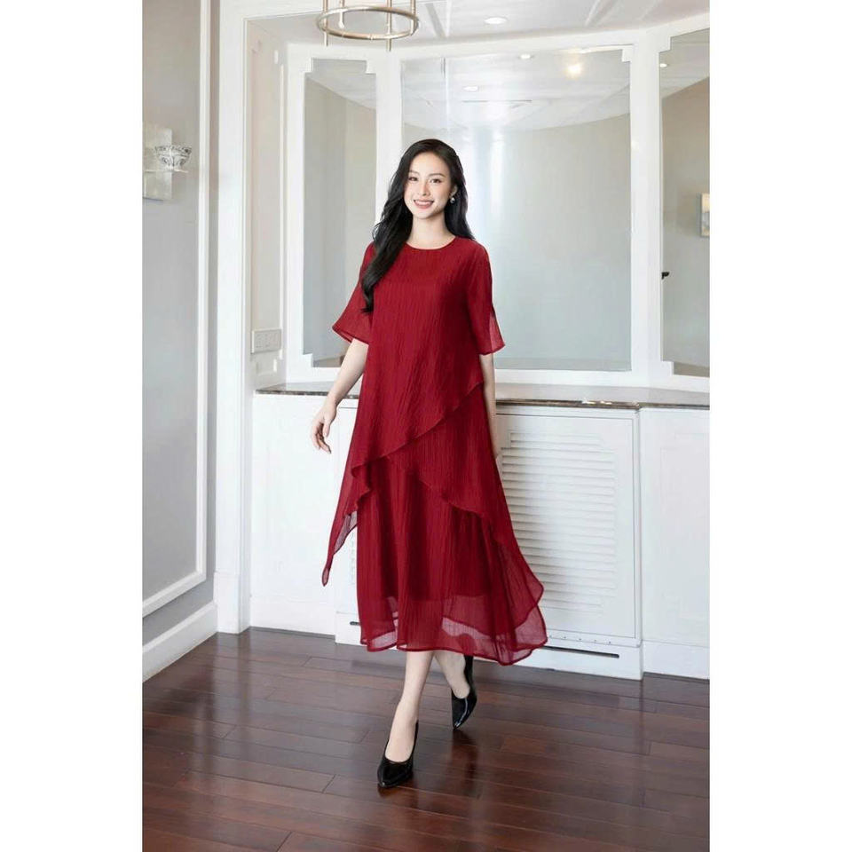 Women's Cross-Sleeved Loose Dress with Multi-Layered Puffy Silk and Korean Silk Lining for Party