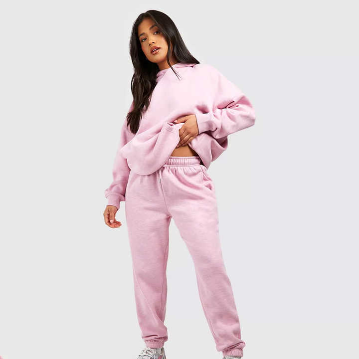 Women's Custom Cotton Fleece Oversized Gym Fitness Set Two-Piece Winter Sports Tracksuit with Printed Logo Plus Size