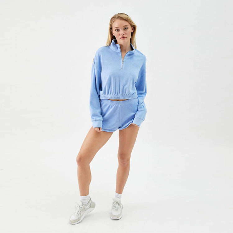 Women's Custom Cotton Sweatpants with Two-Piece Crop Top Spring Hoodie Shorts Set Wholesale Active Bottoms