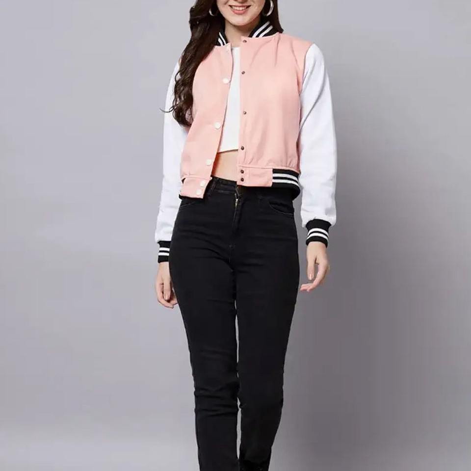 Women's Custom Cropped Breathable Printed Canvas Letterman Jacket New Arrival Winter Fall Cotton Varsity Style XL Size Wholesale