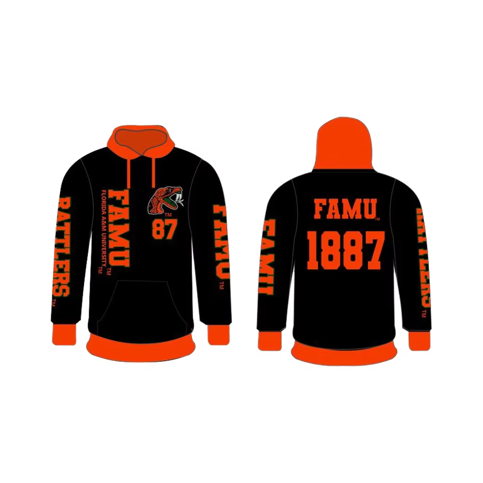 Women's High Quality Custom FAMU Florida A&M Vintage Style Hoodie Collegiate Design Embroidered Front Tie Woolen Washed Autumn