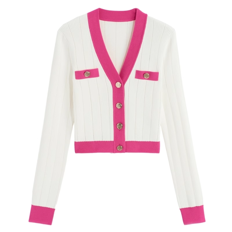 Women's Custom LOGO Solid Color V-Neck Knit Cardigan Spring New Slim Design With Metal Buckle Casual Style OEM & ODM