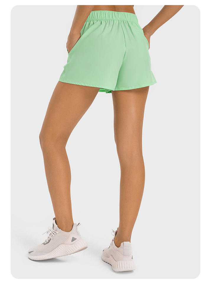 Women's Custom Logo Gym Shorts with Elastic Waist 2-in-1 Liner for Running Biking Sporty Tennis Yoga Shorts Inner Pocket Design