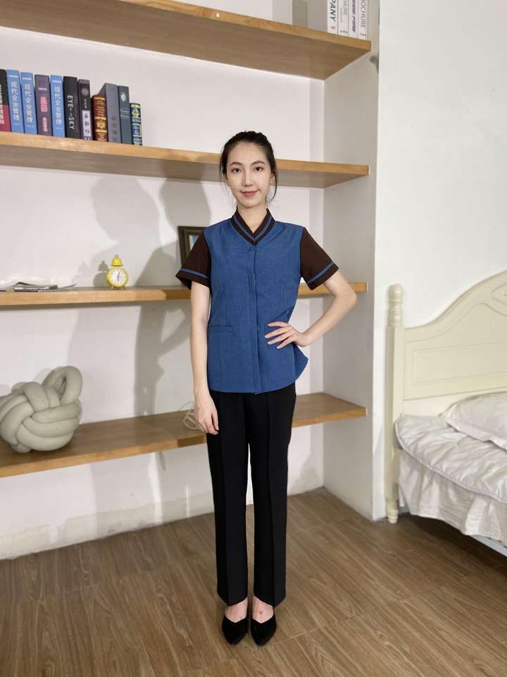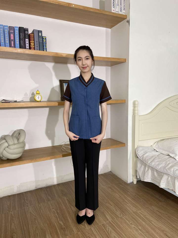 Women's Custom Logo Short Sleeve Staff Cleaning Uniform Hotel Housekeeping Cleaner Reception Style
