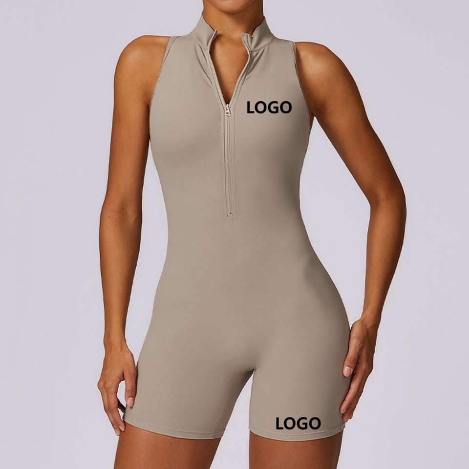 Women's Custom Logo Sleeveless Sports Bodysuit Backless Half Zipper Gym Jumpsuit Fitness Yoga Wear