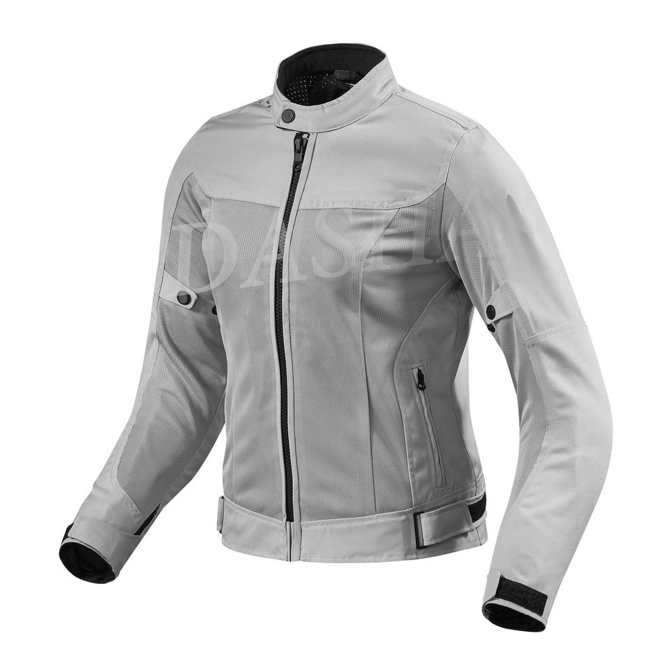Women's Custom White Polyester 600 D Motorbike Jacket Windproof Summer Season Veil IV CE Back Protected Wholesale for Ladies