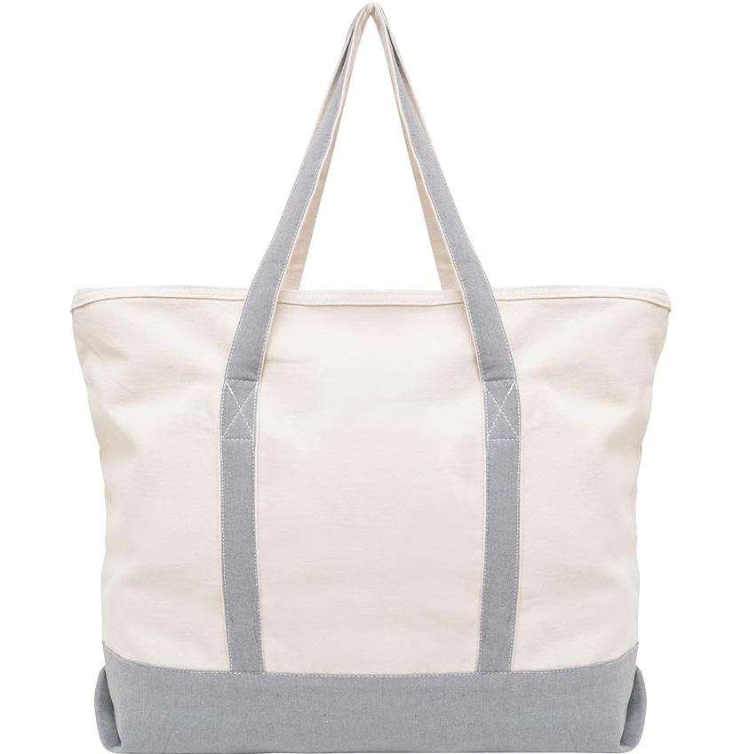 Women's Custom Printed Large Cotton Canvas Tote Bag Handled Style Zipper Beach Handbag Tourists Canvas Bags