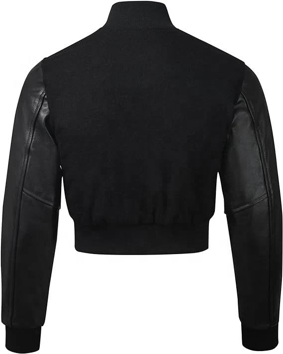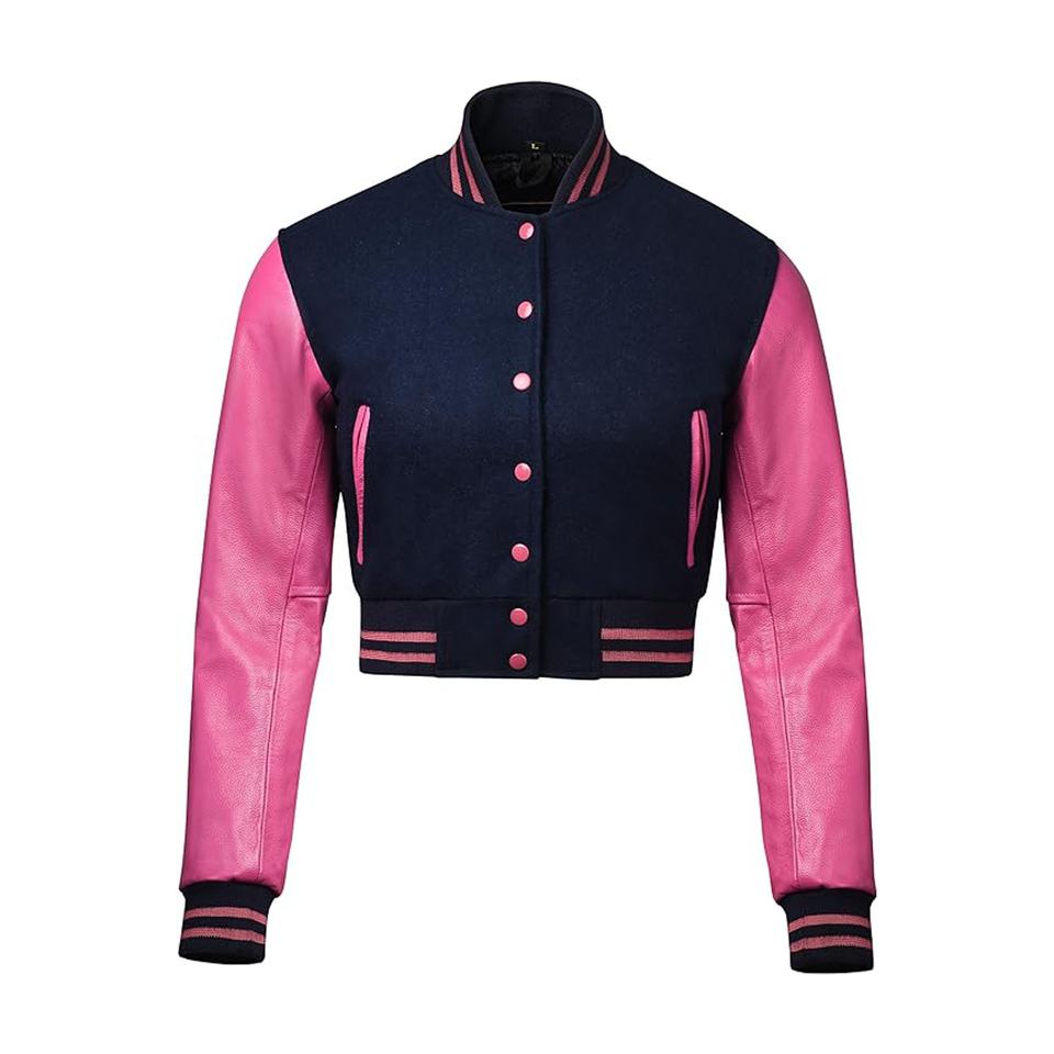Women's Custom Short Cropped Quilted College Letterman Varsity Jacket Woven Rivet Solid Design Autumn Windproof Stand Embroidery