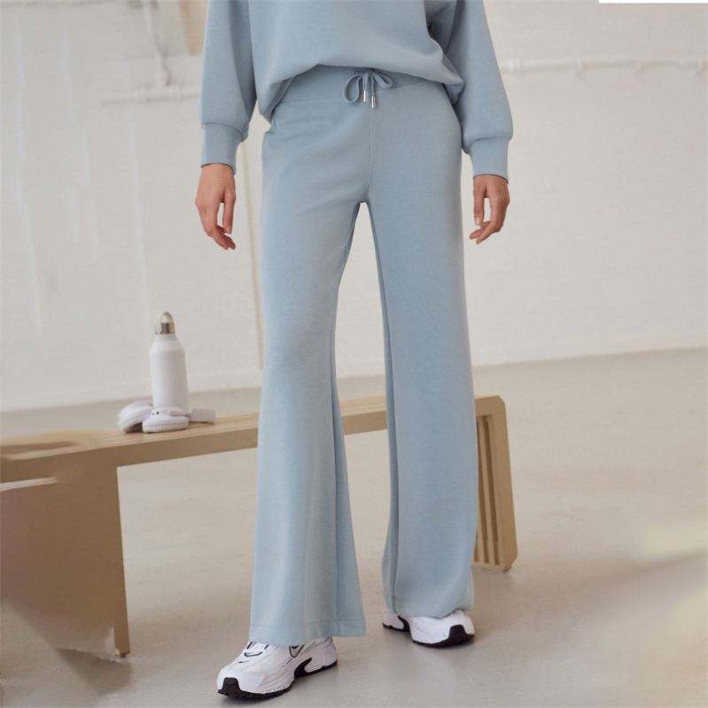 Women's Custom Solid Quarter Zip Sweatshirt Loose Fit Wide Leg Joggers Autumn Casual 2-Piece Knitting Outfits Long Tops