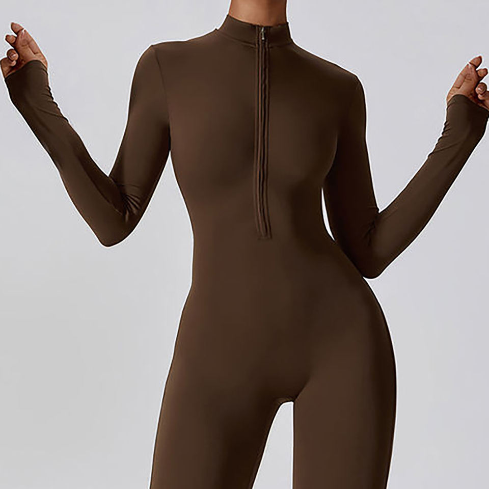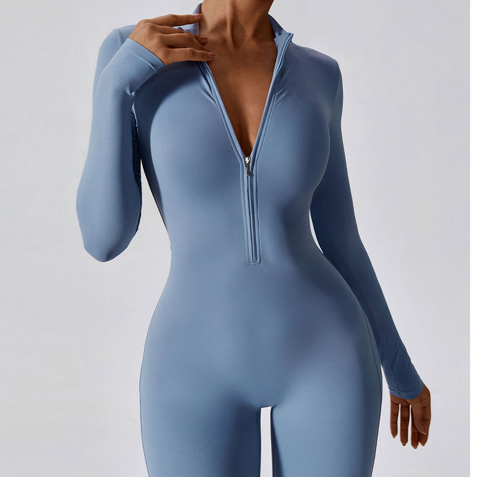Women's Custom Sports Bodysuit Jumpsuit for Girls Workout Full Sleeve Fitness Breathable Shorts With Invisible Zipper