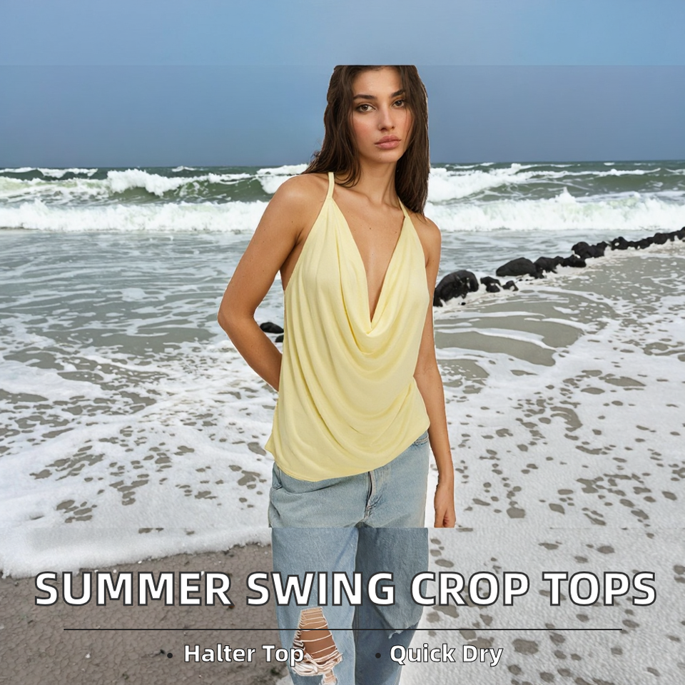Women's Custom Summer Crop Tops Halter Neck Casual Summer Swing Tops in Solid Colors Sexy Backless Design for Girls