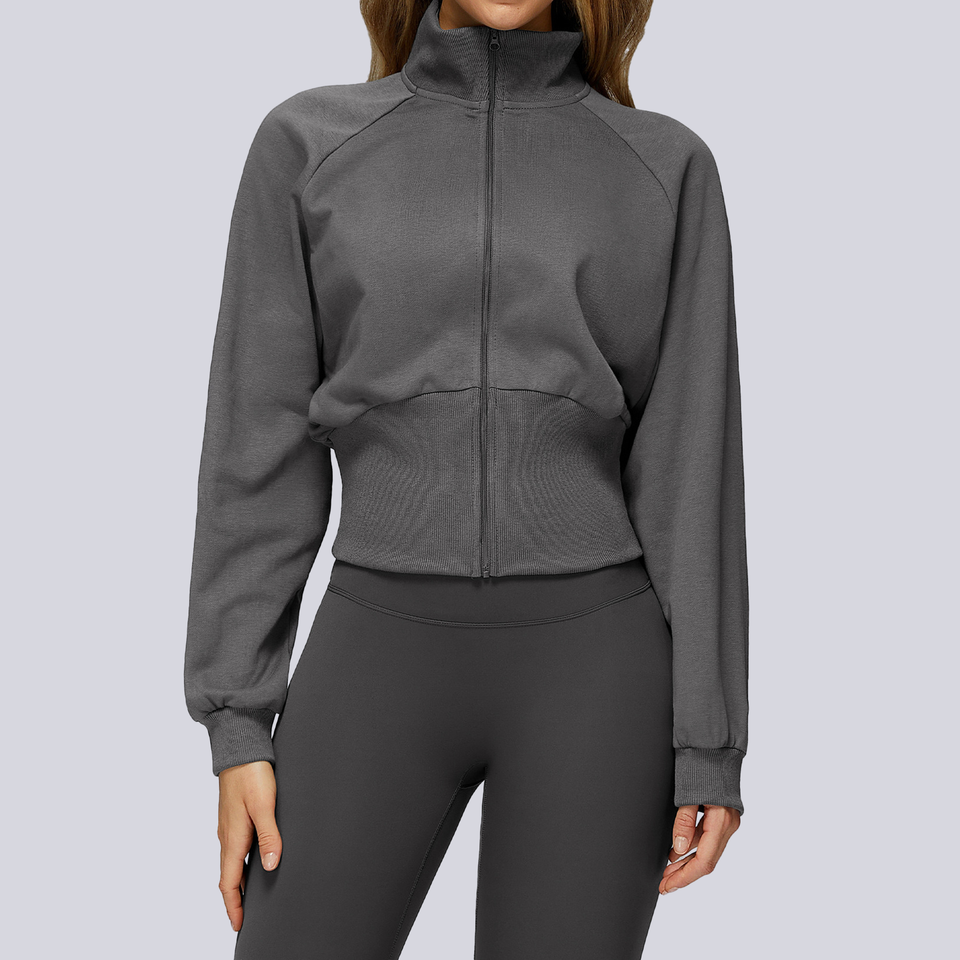 Women's Custom Sweatshirt Stand Collar Zip up Loose Gym Crop Top with Drawstring Winter Sports Outfit Women Sweatshirt