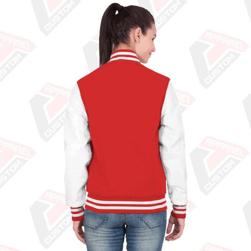 Women's Custom Varsity Jacket Stand Collar Formal Style with Wool & Leather Sleeves Chenille Embroidered Letterman Front Logo