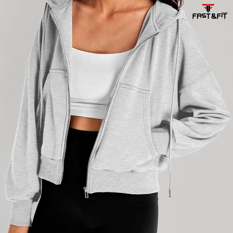 Women's Customizable 100% Cotton Crop Top Hoodie Full Sleeve Low MOQ Front Logo Printed Design Made in Pakistan