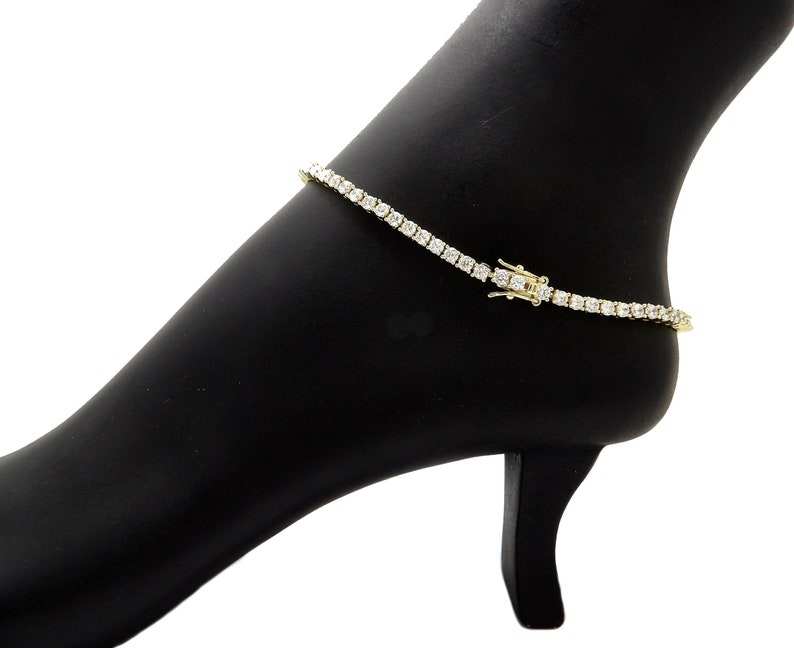 Women's Customized 3mm Leb Grown Tennis Chain Fashion Anklets in 10_11_12 Sizes 925 Sterling Silver with Diamond as Main Stone