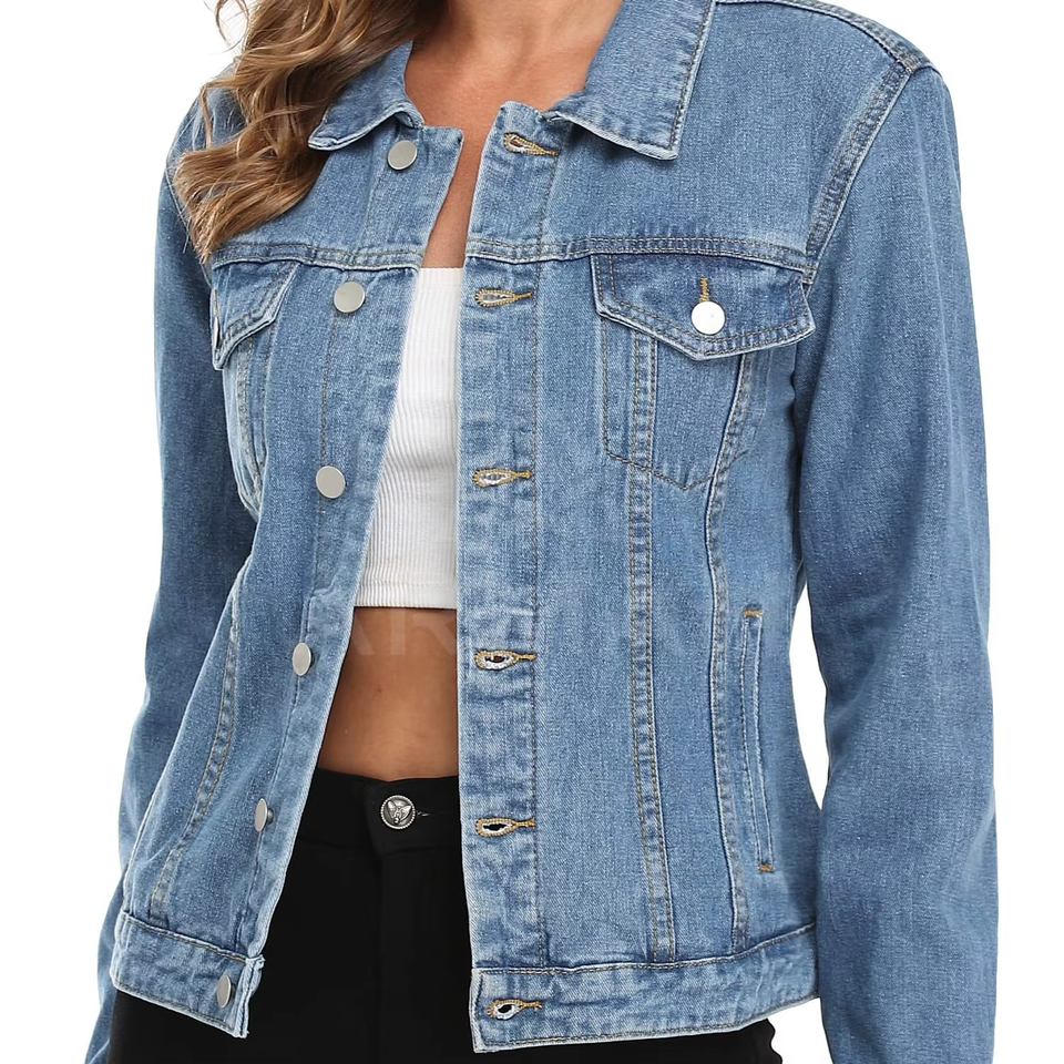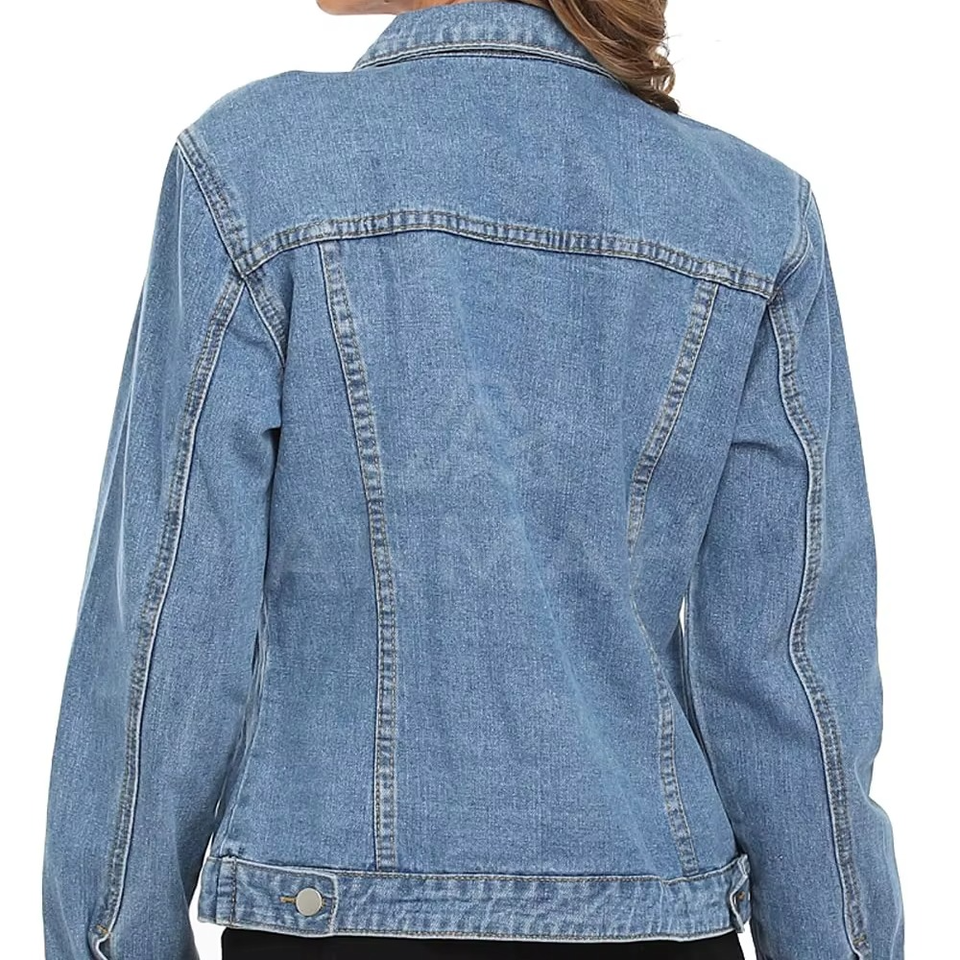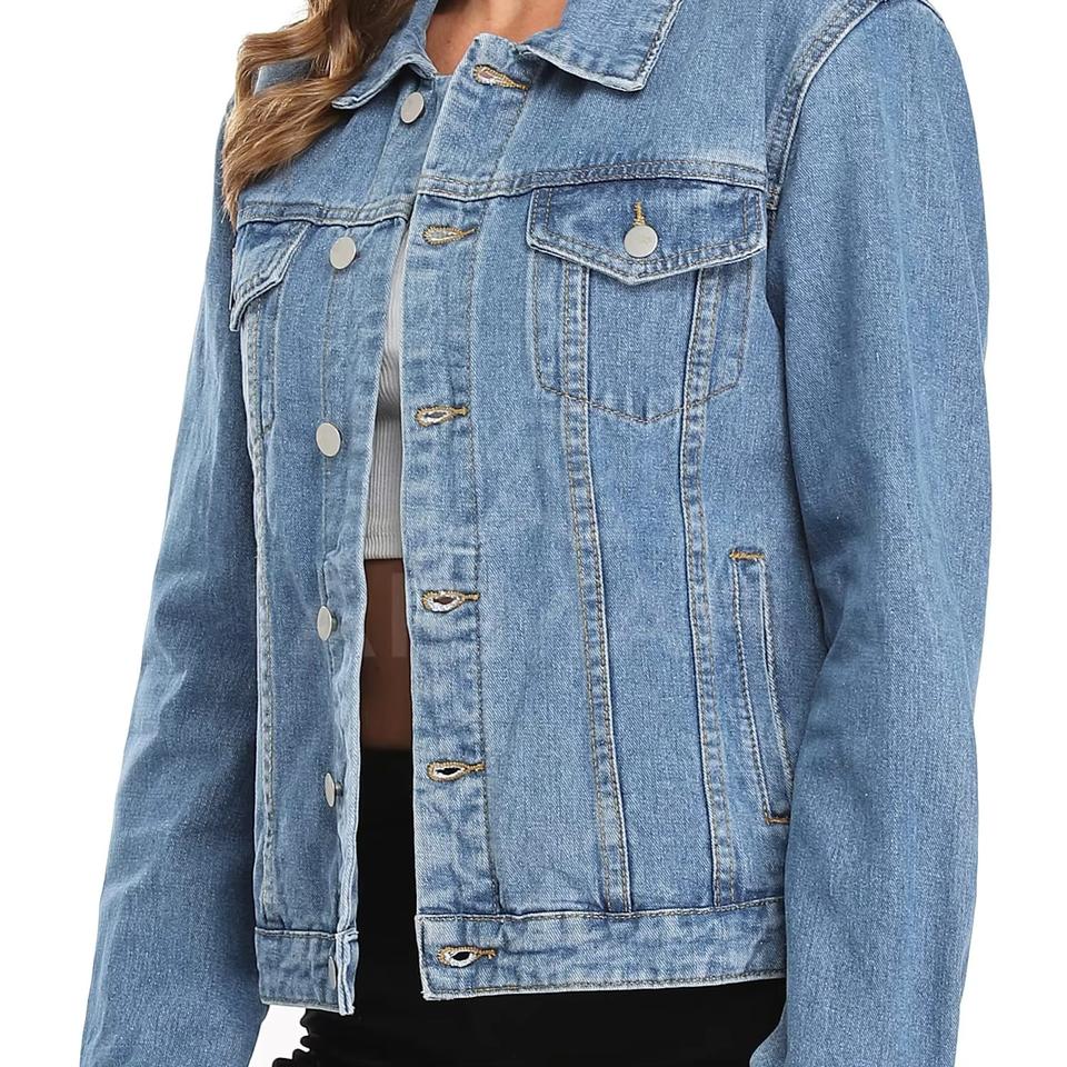 Women's Customized Finished Oversized Denim Jacket Casual Button Closure Long Sleeves Woven Cotton Breathable High Quality 180g