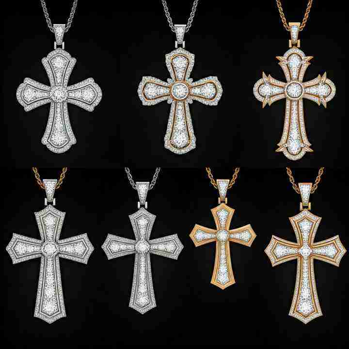 Women's Customized Gold Moissanite Pendant Hip Hop Vintage Style Custom Cross Design Fashion Jewelry