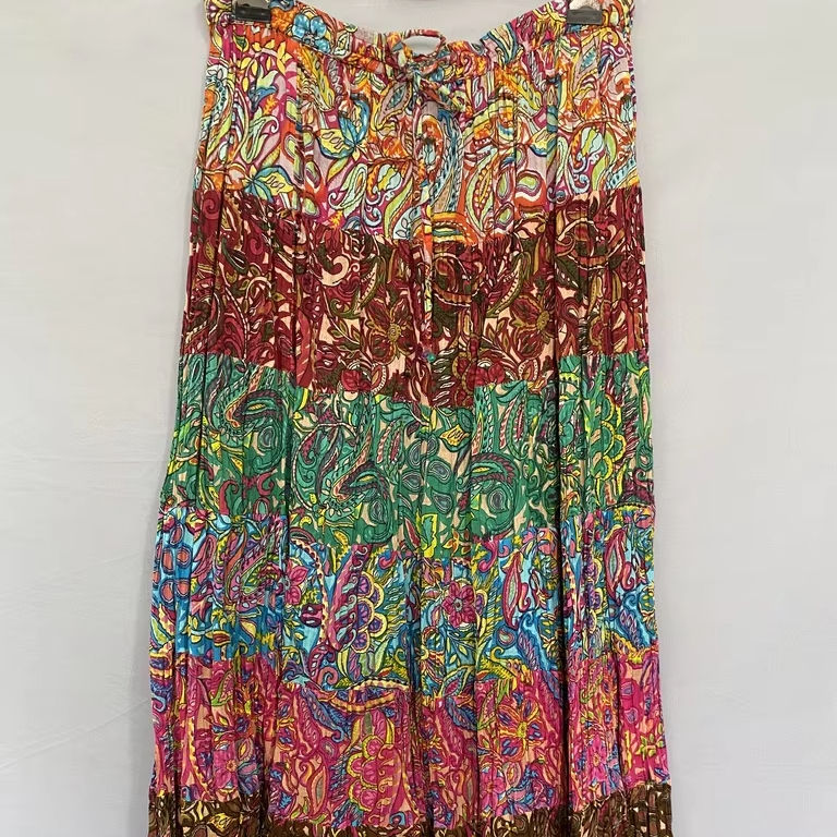 Women's Customized Logo Cotton Frock Dress Factory Customized Pleated Swing Tight Waist Casual for Printed Straight Silhouette
