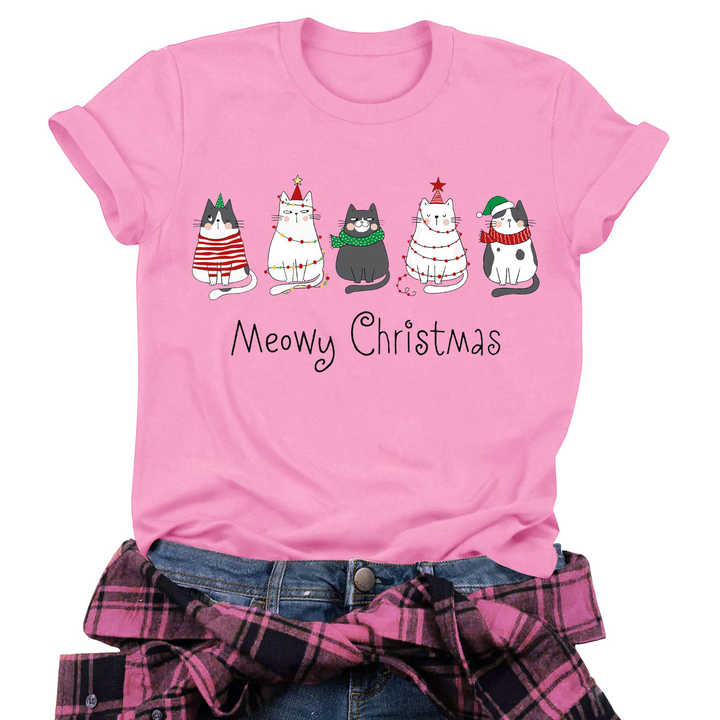 Women's Customized Short Sleeve Christmas T-Shirt Breathable Loose Streetwear With Letter Print Design Christmas Women Shirts