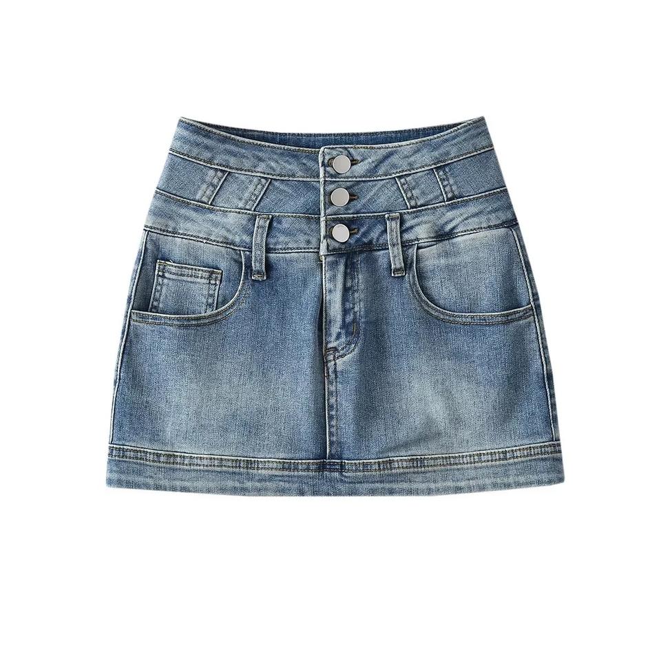 Women's Cute Casual Vintage Y2K Solid Denim Mini Skirt for Summer Streetwear with Logo on Waist Straight for Spring Autumn