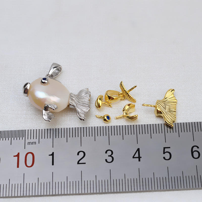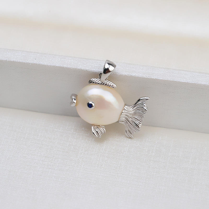 Women's DIY Jadeite Necklace with S925 Silver Baroque Large Tail Fish Pendant Special-Shaped Pearl-Mounted Accessories