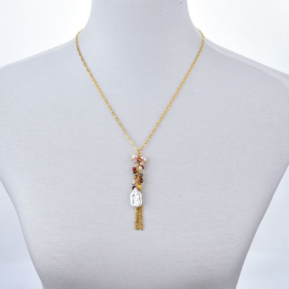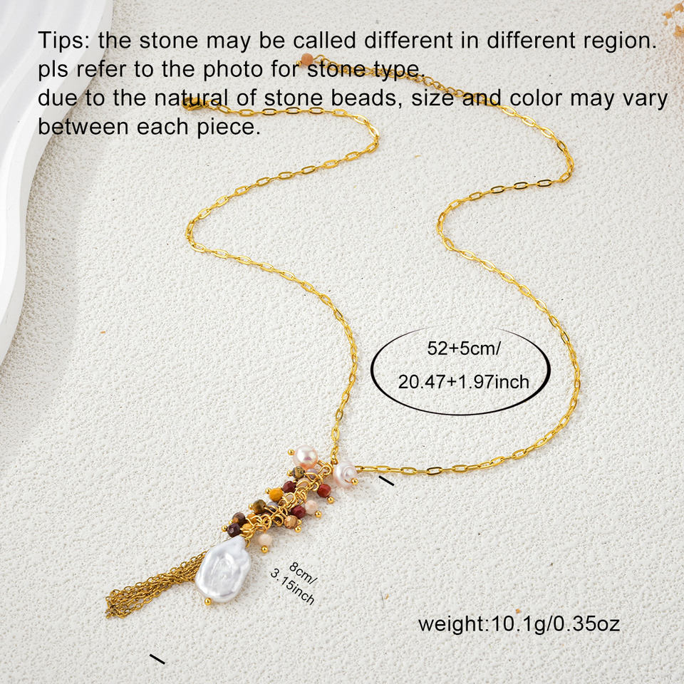 Women's Daily Chic Fashion Natural Stone Beaded Necklace with Irregular Pearl and Gold Accents Statement Jewelry