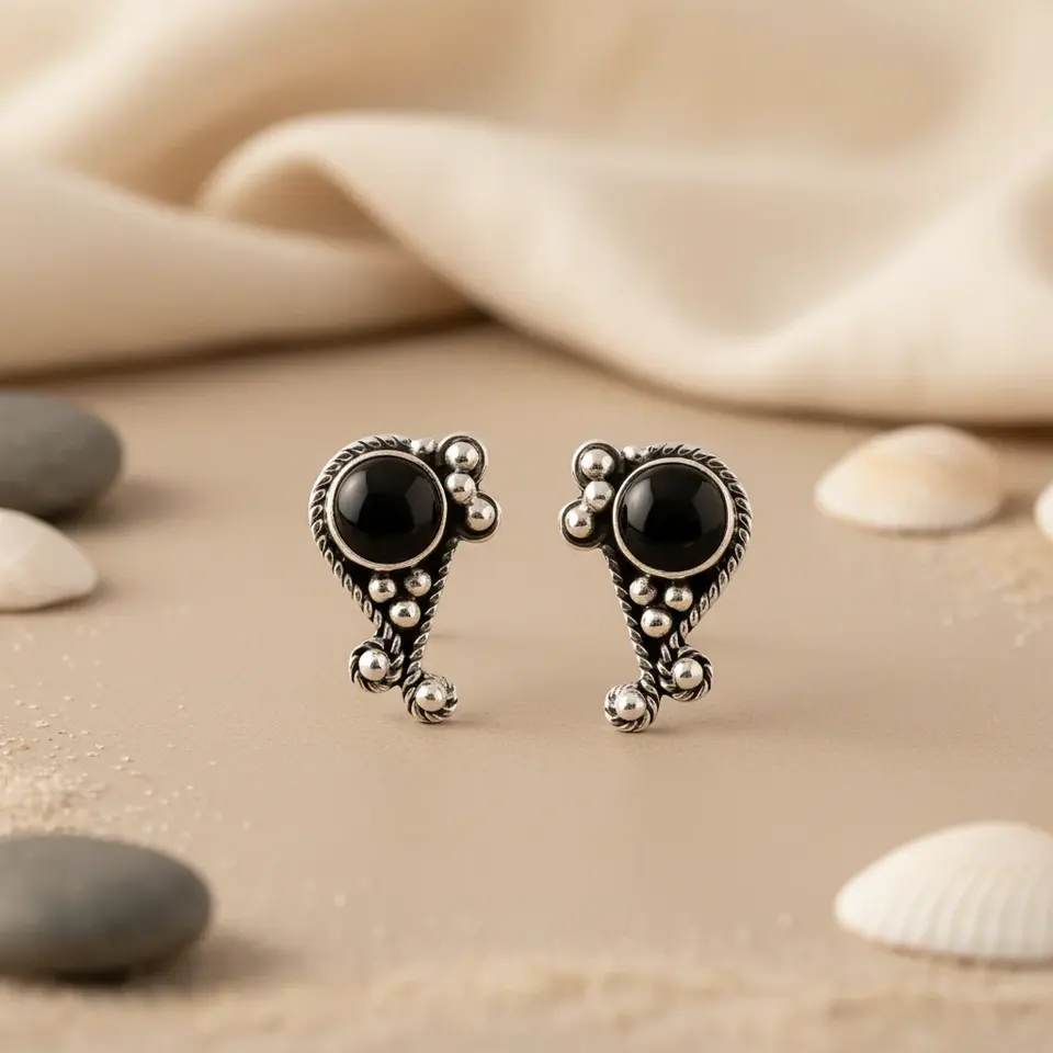 Women's Daily Wear 925 Silver Drop Earrings with Black Onyx Diamond & Ruby 14K Gold Plated Trendy Style for Engagement