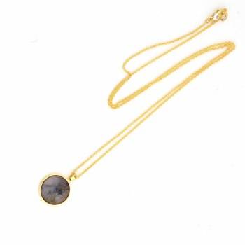 Women's 15mm Natural Blue Fire Labradorite Pendant Necklace Dainty Minimalist Design Fine Sterling Silver Gold Plating Jewelry