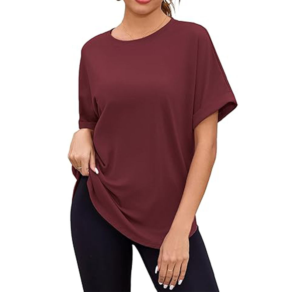 Women's Dark Red Short Sleeve Loose Fit Crew Neck T-Shirts Custom Printed Logo Decoration Hot Summer Fashion Casual Style