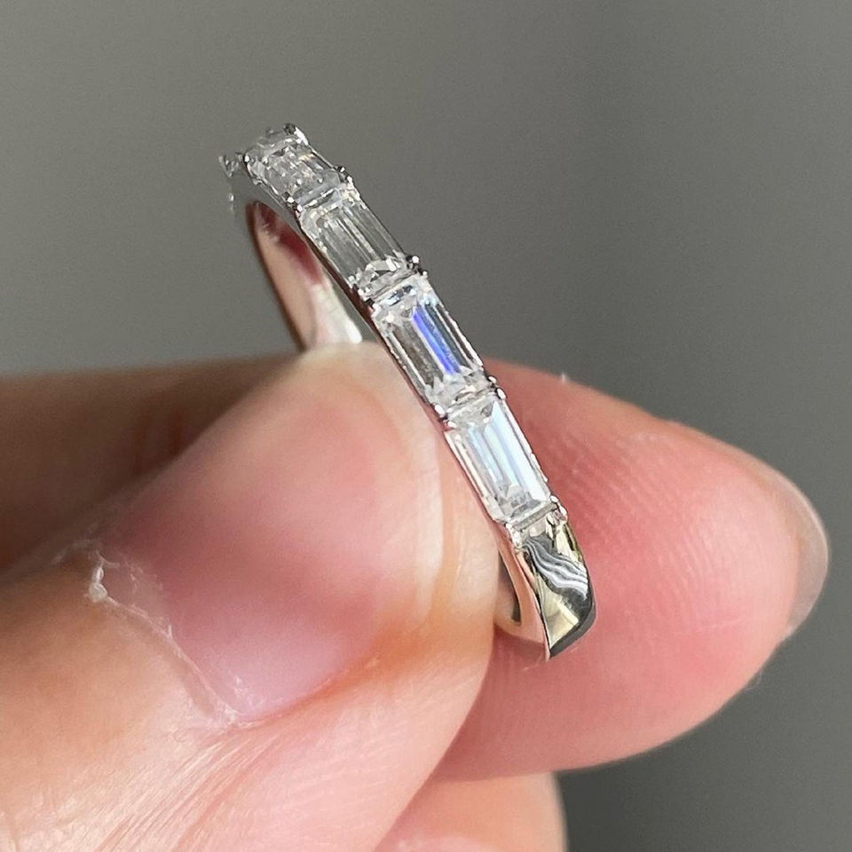 Women's Delicate Modern Half Eternity Moissanite Ring Baguette Cuts Stackable Design Fine Jewelry Wedding Gift for Her Certified