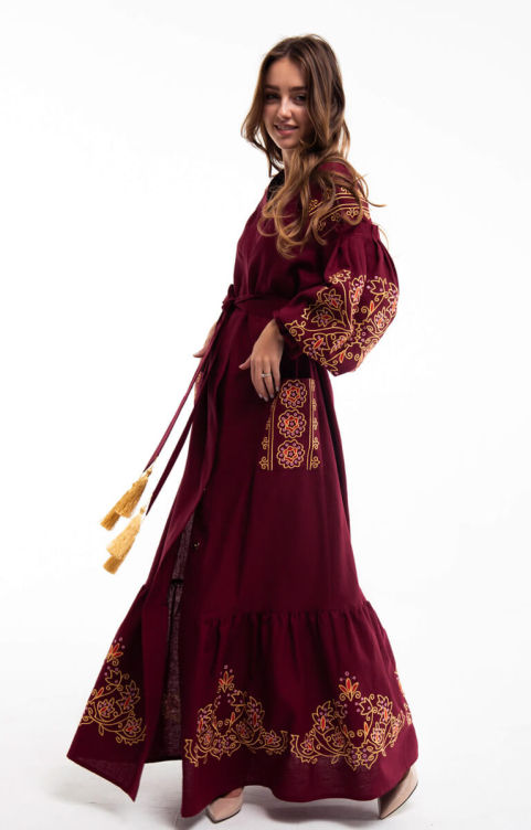 Women's Designer Cotton Clothing Embroidered Long Balloon Sleeve Floor-Length Dress Formal Sexy Maxi Size Plus for Ukraine