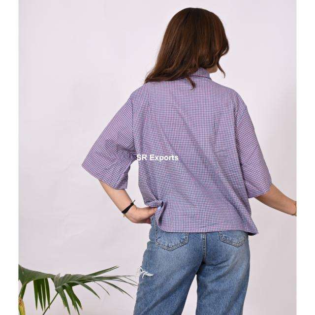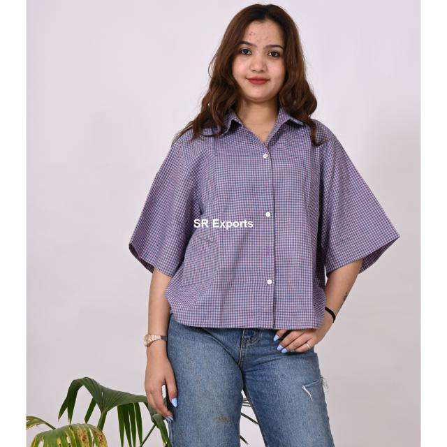 Women's Designer Cotton Top Blouse Blue Handloom Shirts for Formal & Casual Wear for Office or Summer-Wholesale Exporter