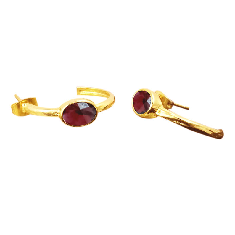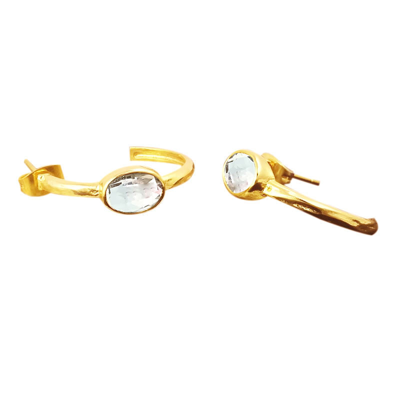 Women's Designer Hoop Wedding Stud Earrings Sterling Silver with Gold Vermeil Oval Aquamarine Gemstone for Anniversary Gift