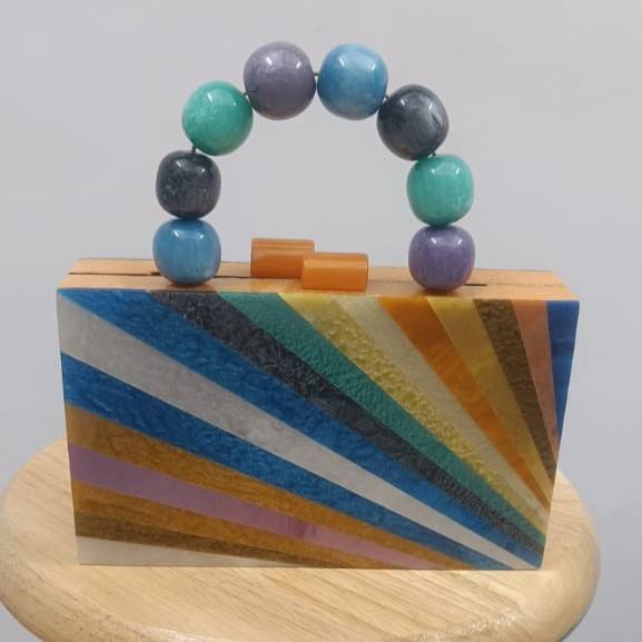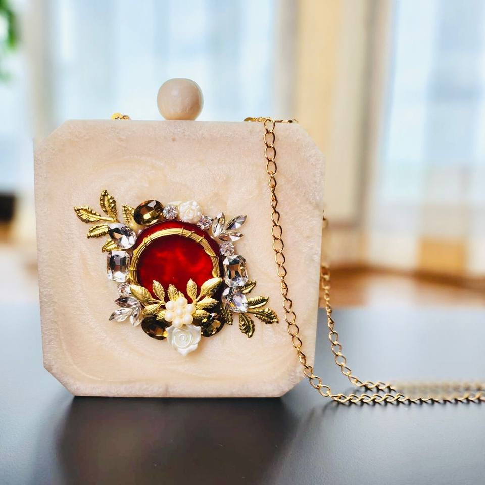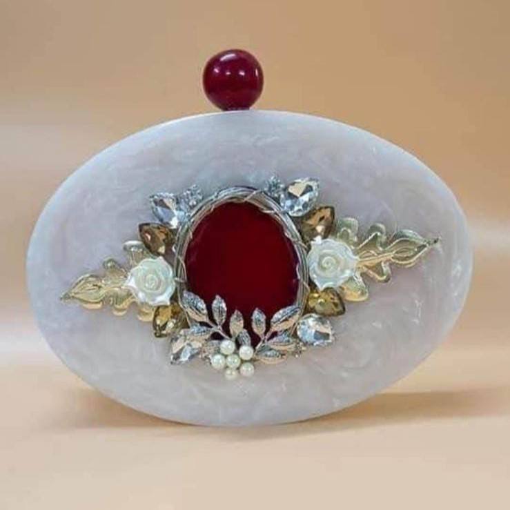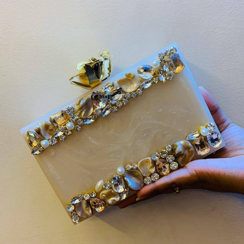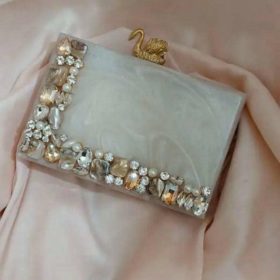 Women's Diamond Resin Clutch Handbag with Open Rhinestone Button Pearl Fashionable Design for Home Party & Wedding