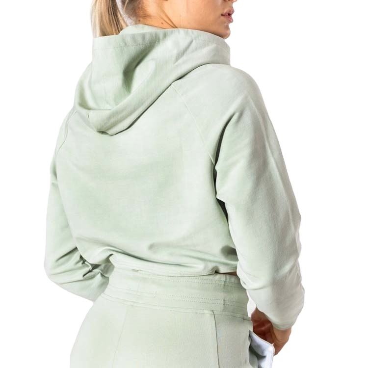 Women's Dusty Mint Cropped Hoodie | Adjustable Canvas Gym Fitness Sportswear | Clean Design Workout Top Customizable Color Front