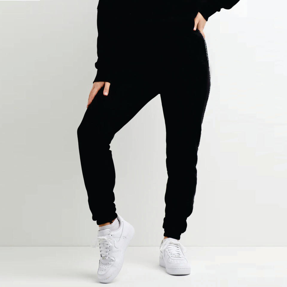 Women's Dynamic Branded Jogger Black Bottoms High Waisted 65% Cotton 35% Polyester Tracksuit with Front Flat Style for Winter