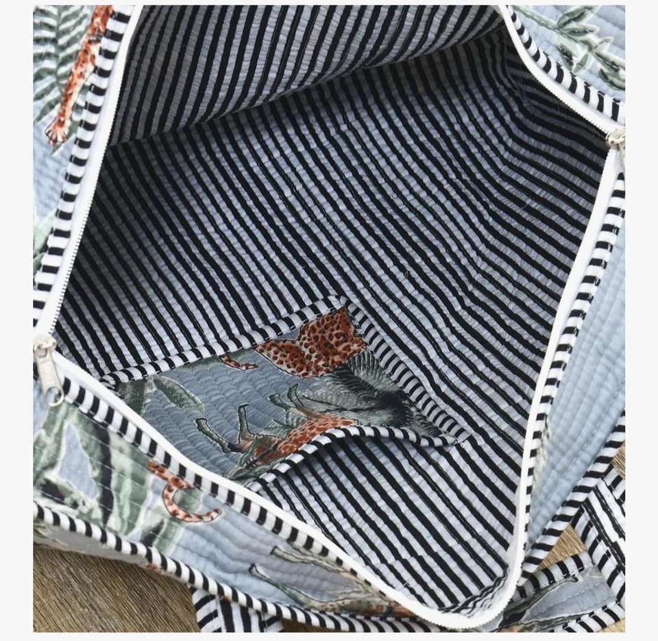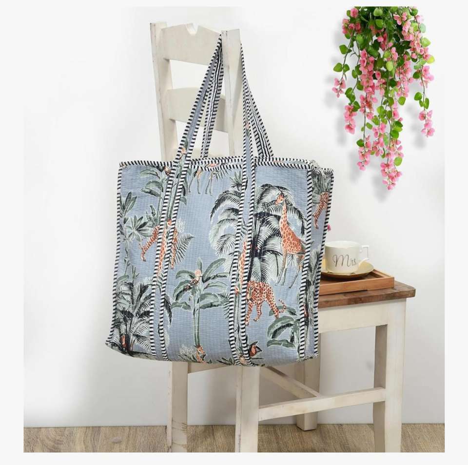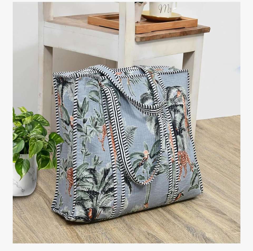 Women's Eco-Friendly Grey Quilted Canvas Tote Bag Vintage Pattern Durable Zipper Fashionable Lady Style for Summer Travel