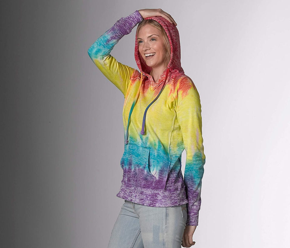 Women's Eco-Friendly Heavyweight Drop Shoulder Sweatshirt Breathable Knitted Figures Tie Dye Hoodie Front Closure 100% Cotton