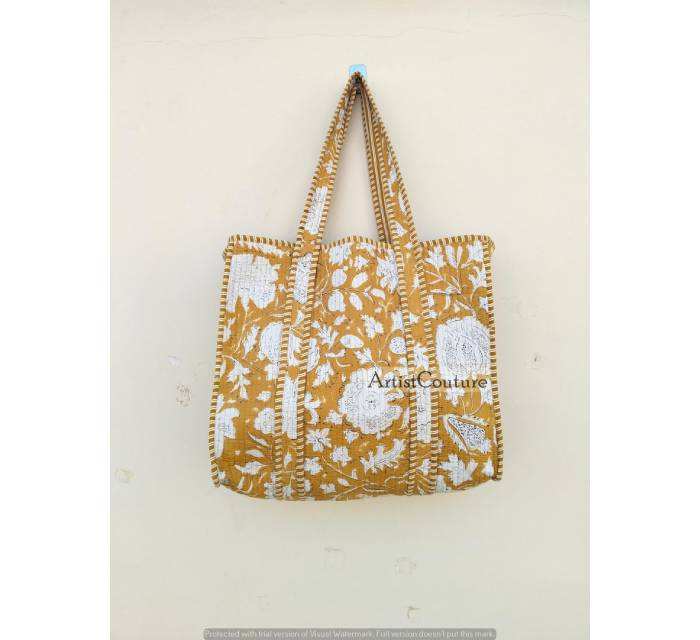 Women's Eco-Friendly Large Zipper Gym Yoga Tote Bag Trending Vintage Style Handcrafted Quilted Cotton Beautiful Design Portable