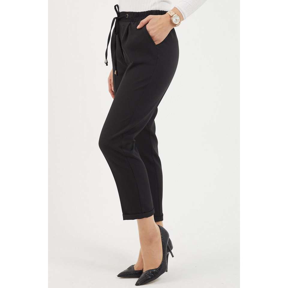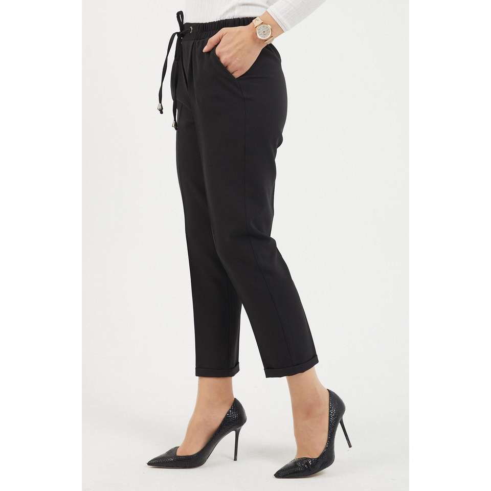 Women's Elastic Double Hem High-Waisted Casual Trousers XL Fashion Pants Breathable Pencil Style Palazzo with Wrinkled Technics