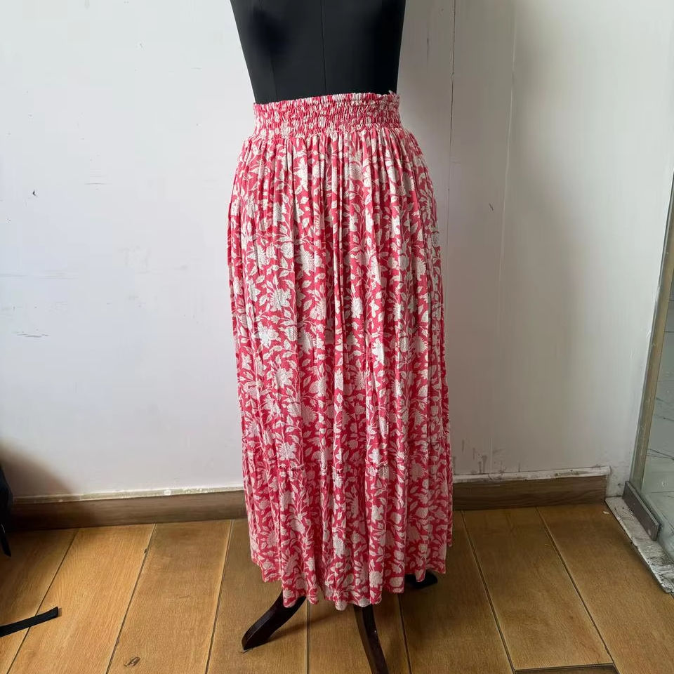 Women's Elastic Waist Satin Plazzo Skirt Printed Casual Summer Daily Wear with Embroidered Long Skirt