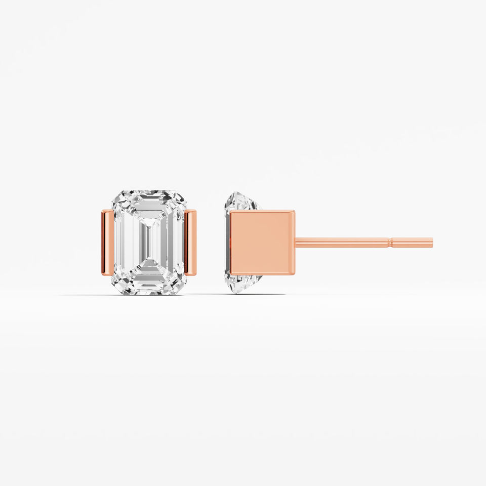 Women's Elegant 2.11 Ctw Emerald Cut Moissanite Solitaire Stud Earrings 925 Sterling Silver Rhodium Plating Classic VABS DIAMOND